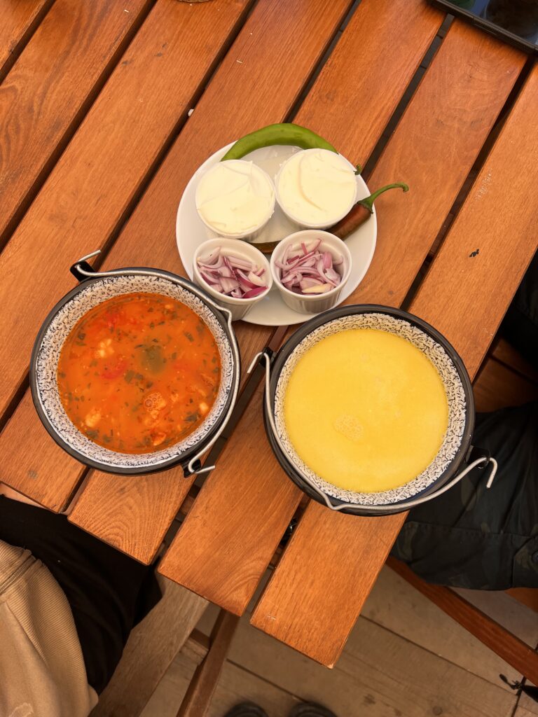 Szczególnie polecam tradycyjne rumuńskie zupy, czyli ciorbă. Najbardziej smakowały nam dwie: Ciorba de perișoare, czyli kwaśna zupa z klopsikami przygotowanymi z mielonego mięsa wieprzowego, ryżu i przypraw oraz Ciorbă de burtă, czyli rumuńskie flaki w kwaśnym wydaniu. Do każdej zupy obowiązkowo podaje się ostrą paprykę do przegryzienia oraz śmietanę, którą można dodać według uznania. Jeśli lubisz pikantne smaki, warto co jakiś czas przegryźć papryczkę.
